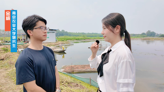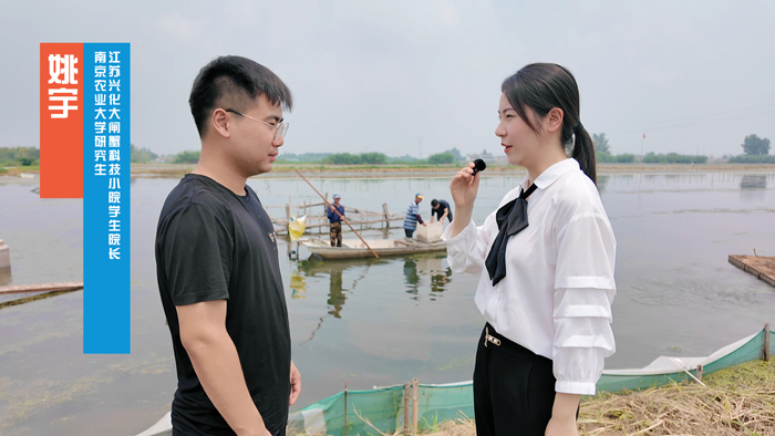 科技小院的学生院长研究生姚宇分享了团队成长之路。常驻研究生白天在塘口记录水质数据,夜晚在实验室分析样本,定期与学业导师徐钢春、产业导师王存根开展“塘头研讨会”,研究生们走出象牙塔,扎根基地,“真问题”从实践中来,与蟹农并肩巡塘、测水质、调饲料,在田间地头发现问题、凝练课题。镜头跟随研究生代表金威在蟹塘的身影,记录下这位青年学子的心声:“科技小院的魅力在于“零距离”服务。从实验室到田间地头的跨越,让我们真正理解了产业需求。科技小院的经历让我们明白,农业现代化需要更多‘懂技术、爱农村、会服务’的青年人才。站在乡村振兴的时代浪潮中,我们科技小院的研究生既是见证者,更是实践者。”