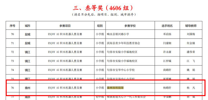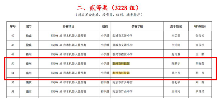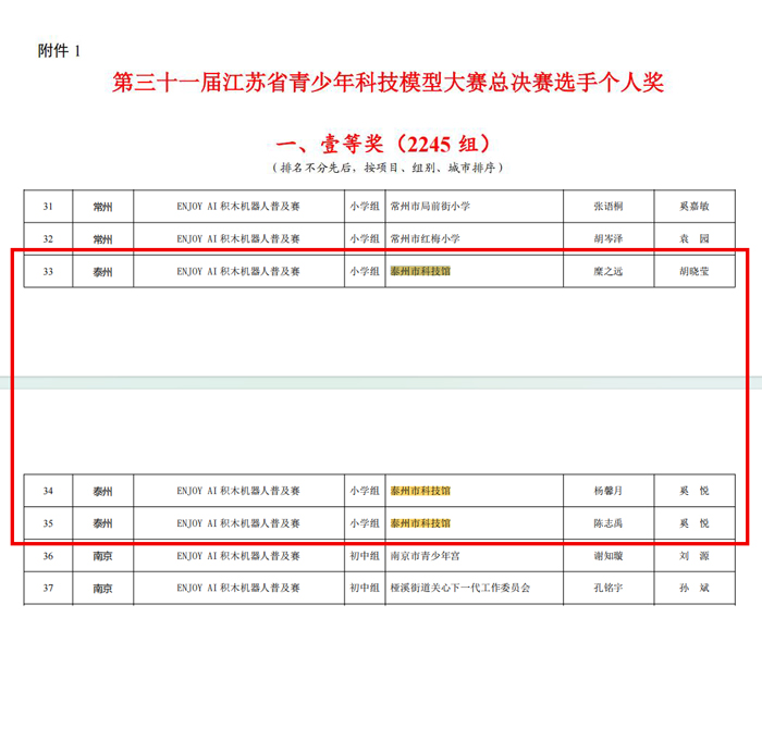 近日,第三十一届江苏省青少年科技模型大赛成绩揭晓,泰州市科技馆代表队在 Enjoy AI 项目中勇创佳绩,成功斩获三个一等奖、两个二等奖和一个三等奖,在全省众多参赛队伍中脱颖而出。