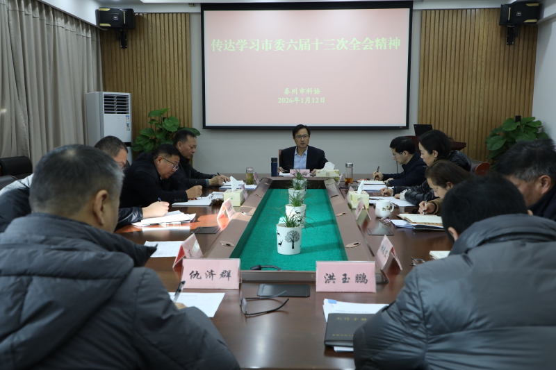1月12日,泰州市科协召开专题会议,传达学习市委六届十三次全会精神,对标对表市委“实干为要”的工作要求,锚定“十五五”开局之年目标任务,抓早抓紧谋划推进2026年工作。